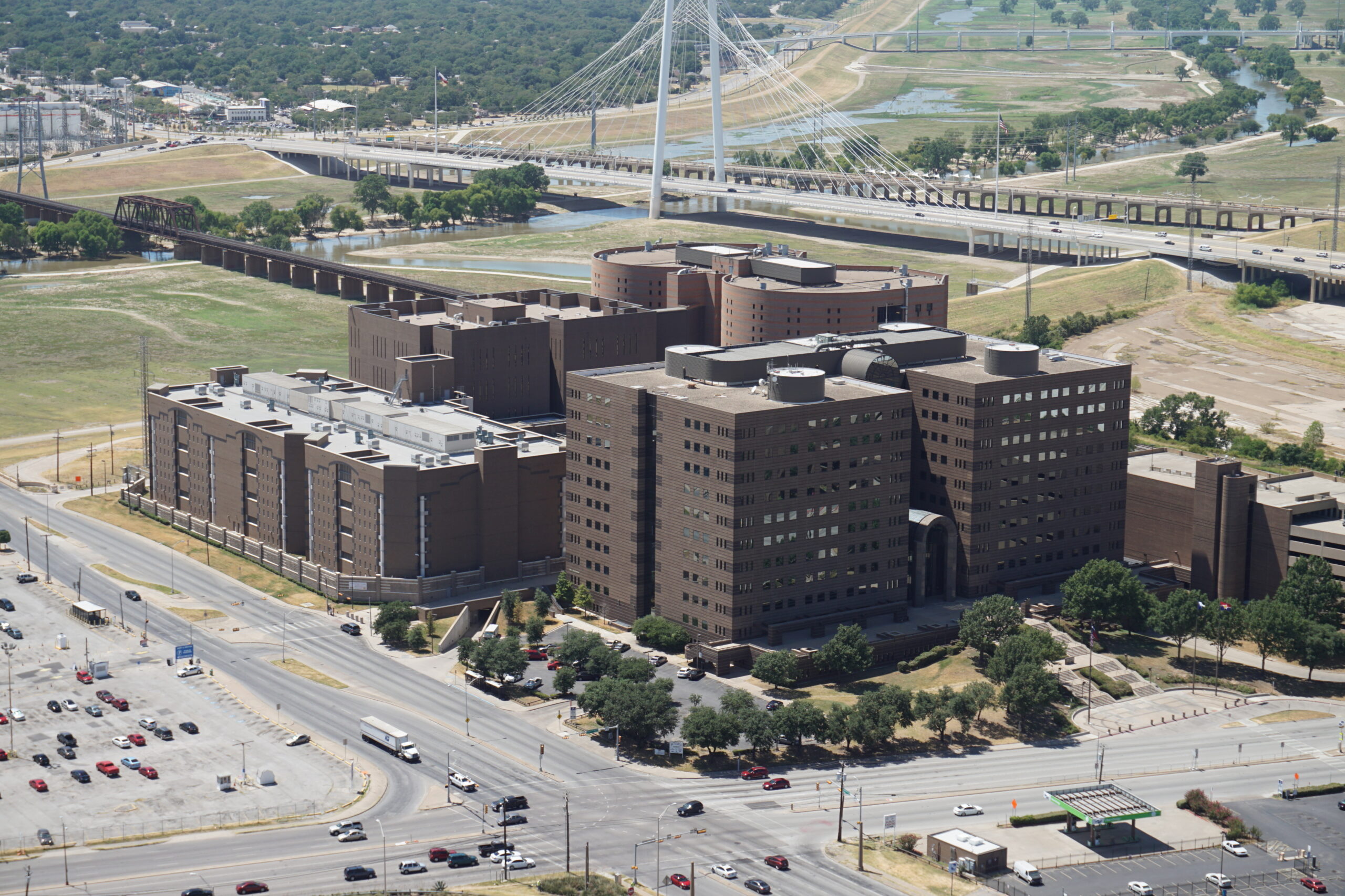 Frank Crowley is located in downtown Dallas near the Trinity River, directly connected to Lew Sterrett Justice Center by an enclosed walkway. Parking is available in adjacent lots (fees apply, typically $4-$10).